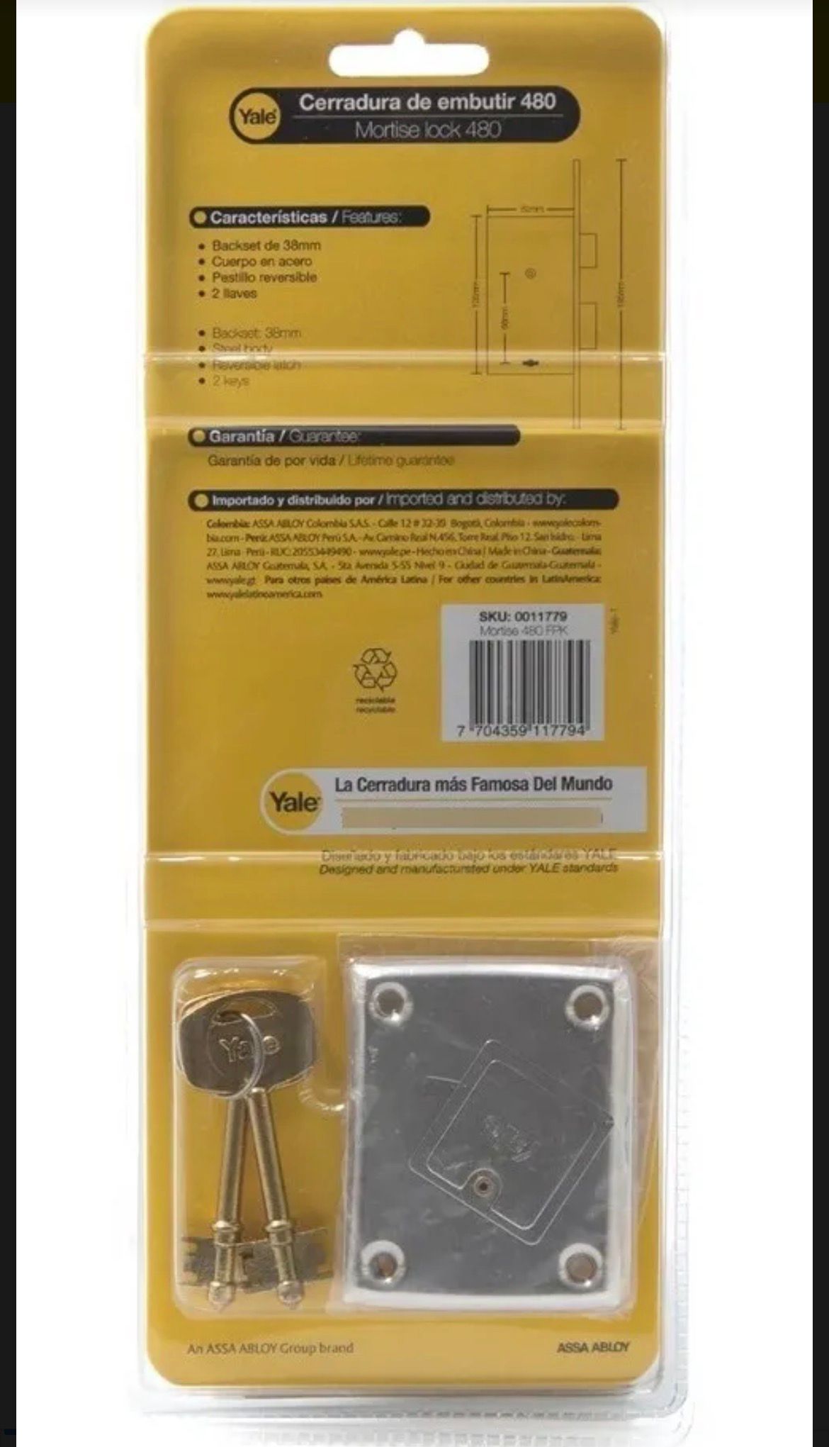 CERRADURA DE EMBUTIR YALE MORTISE 480.